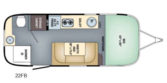 Start camping in the 22FB Airstream. This Sport travel trailer has a rear bath, a front bedroom, and a u-dinette.