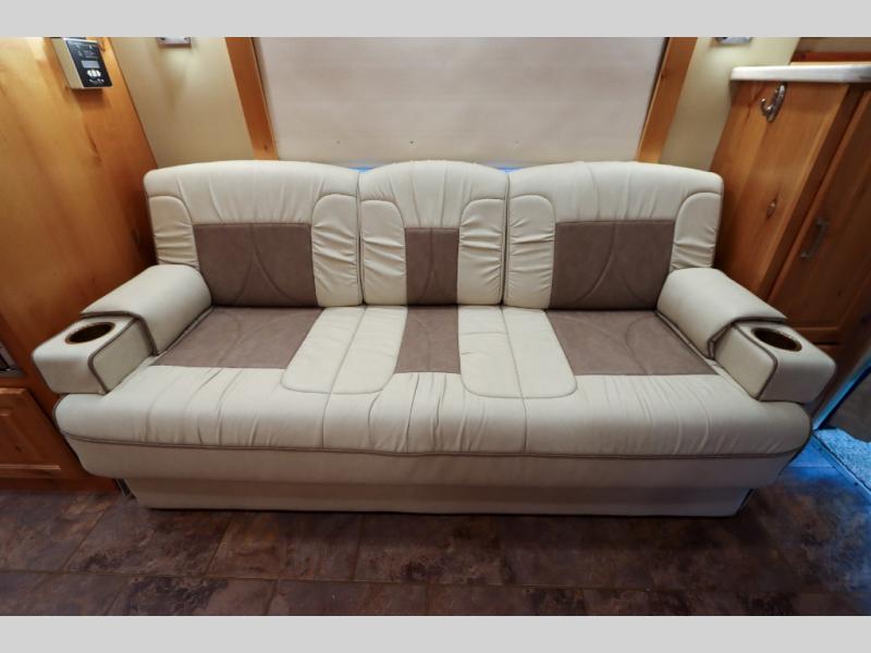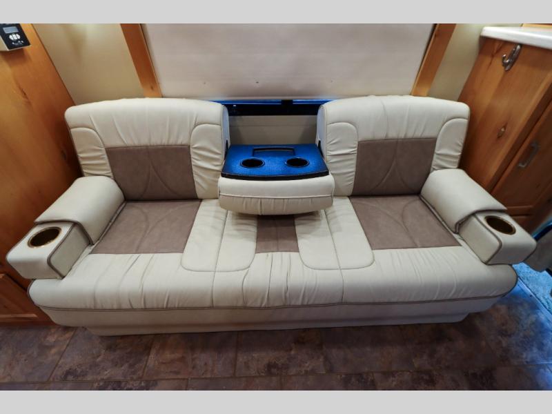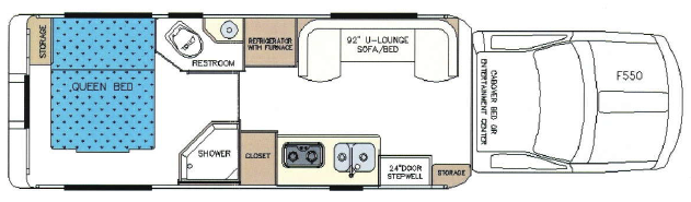 Elegance, style, comfort, and Here is a model that will make any one who wants a made up bed happy. The Majestic has a 76" x 60" walk around bed. Full size living area with a U-lounge or two chairs and pull-up table are available in this coach. This model is built on a F-Series chassis and al-lows the availability of a 6.7 liter diesel motor. The full size bathroom comes with toilet, sink, and a separate shower. If sheer elegance is what you want this model is for you.