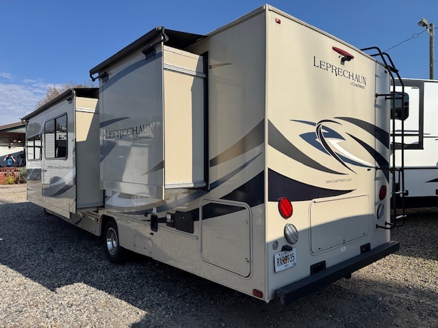 Outside, you’ll find the signature Leprechaun features that campers love—generous exterior storage, a power awning, a smooth fiberglass exterior, and quality construction touches throughout. Whether you're planning weekend getaways or extended travel, this coach offers the reliability and comfort you need.