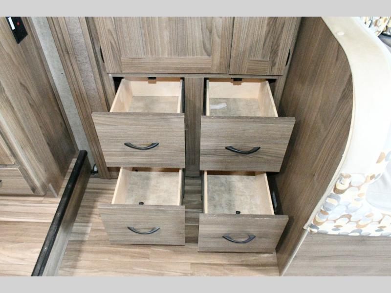 The single slide-out immediately opens up the living space, creating a bright and welcoming interior that feels far larger than expected. Whether you’re pulling off for a quick overnight stay or settling in for an extended road trip, the Prism 2150 LE makes every stop feel like home.