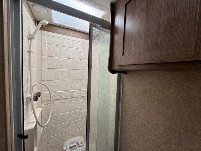 This Prism also features a 48" x 91" bunk above the cab area for additional sleeping space, or you can choose the entertainment center instead with storage cabinets also.