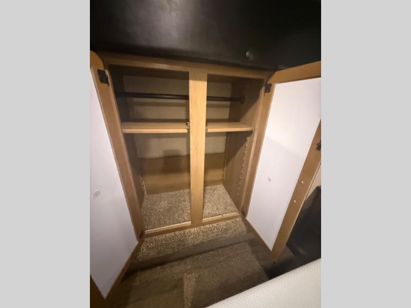 The front bedroom greets you with a queen bed with shirt closets on either side, and a wardrobe slide which provides additional storage.