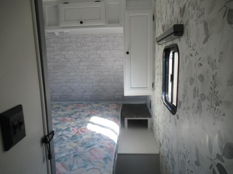 The front bedroom has a queen bed, two shirt closets and nightstands, as well there is an overhead cabinet to stow blankets or books, and more!