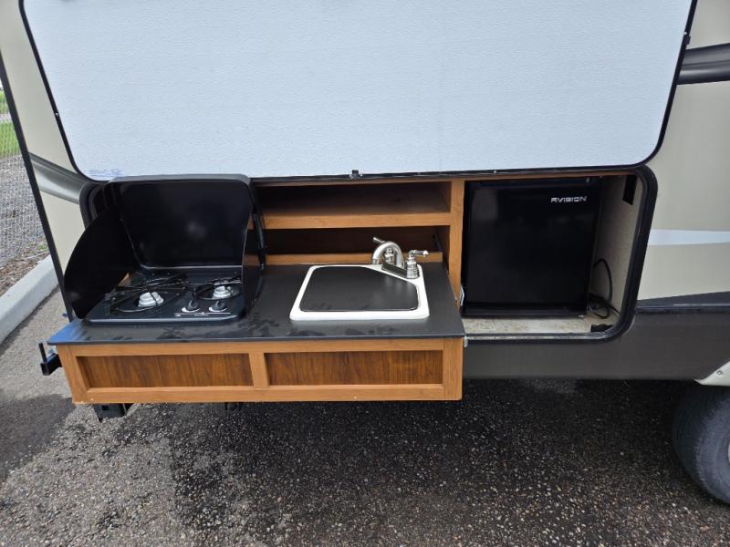 Outside you can even choose an optional kitchen with a two burner range, sink, refrigerator.