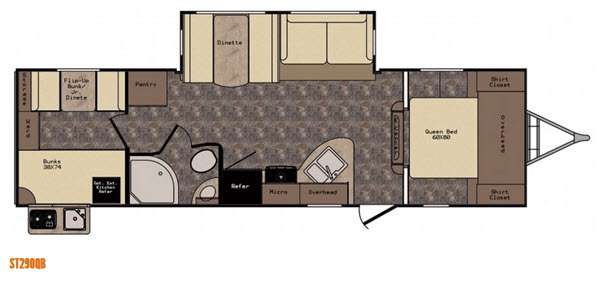 The Sunset Trail Super Lite ST290QB travel trailer by CrossRoads RV offers a single slide and a rear bunk house.