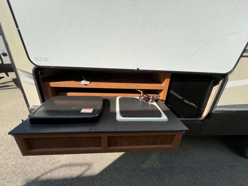 Outside you can even choose an optional kitchen with a two burner range, sink, and refrigerator.