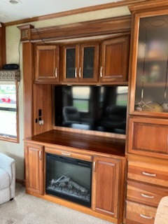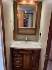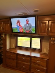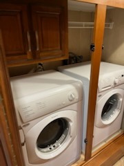 Across from the bath in the hall enjoy the convenience of a washer/dryer wardrobe which is part of the bedroom slide that also features a king size bed and nightstand. Opposite the bed is a vanity with drawers, and storage cabinets. The front wall features a large wardrobe with sliding doors and so much more!