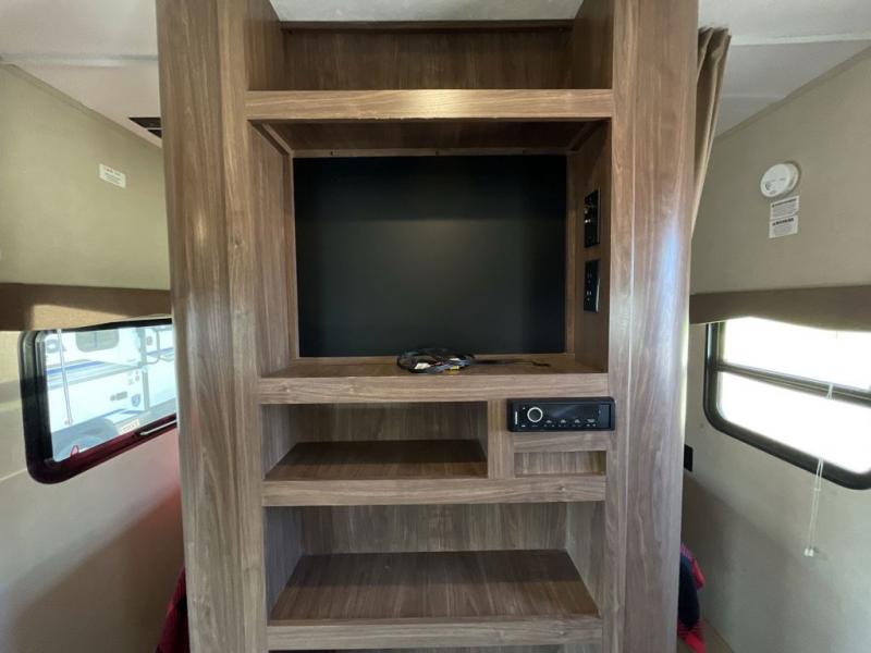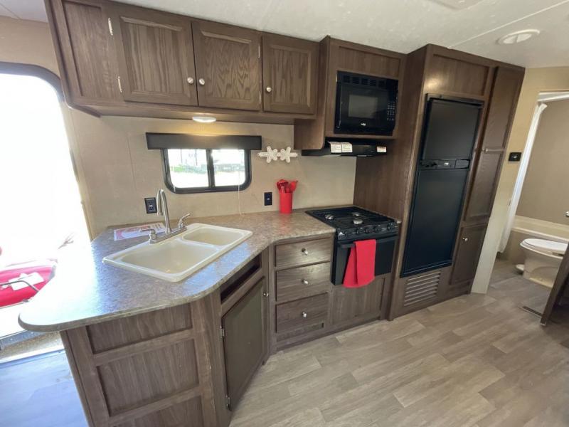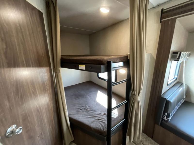 Camp comfortably with family and friends in this Coleman Lantern Series bunkhouse travel trailer. Model 263BH offers sleeping for eight, rear double bed bunks and bath, dual entry, a large slide out in the living/kitchen area, plus so much more!