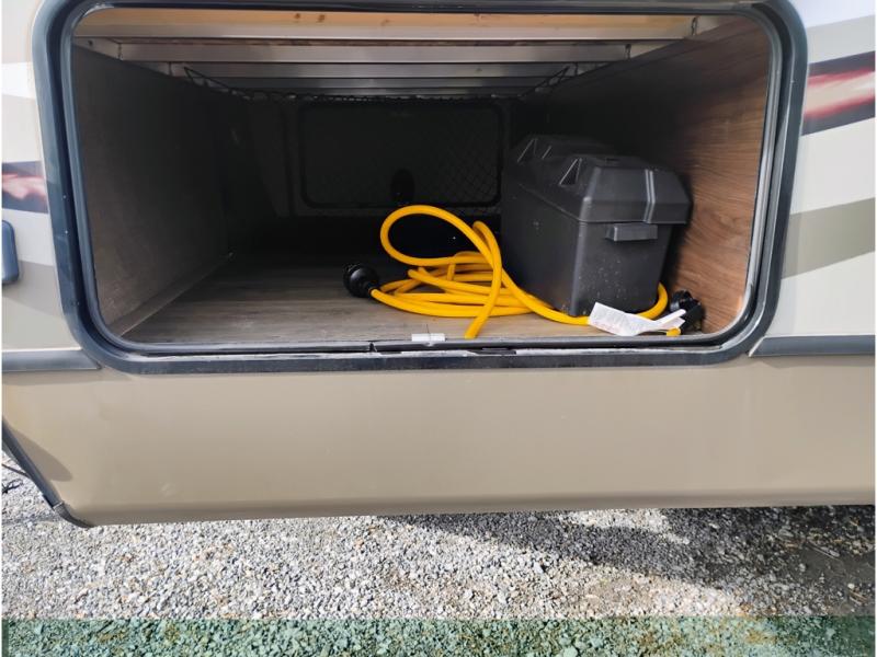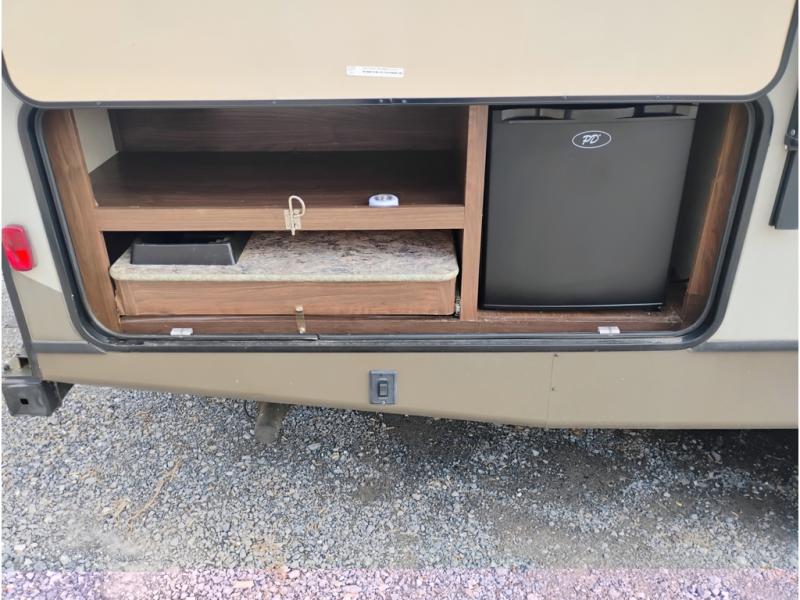 When it's time to enjoy the great outdoors, the outside kitchen provides a sink, refrigerator, and counter space to prepare and serve your favorite camping meals. Plus there is exterior storage near the front of the trailer for easy loading and unloading your outdoor gear, plus more!