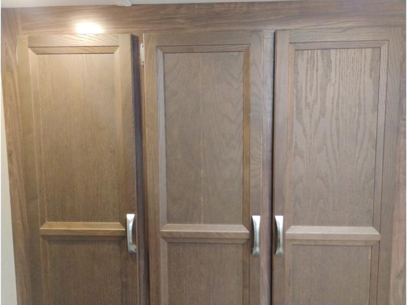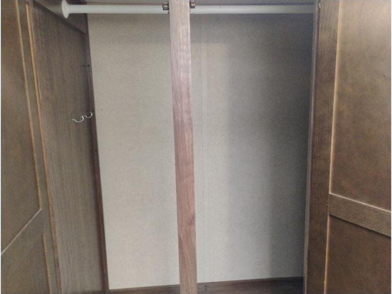 You may enter the front bedroom from either side of the entertainment center. You will find a comfy queen bed, a shirt closet and nightstand on each side of the bed, plus an overhead shelf.