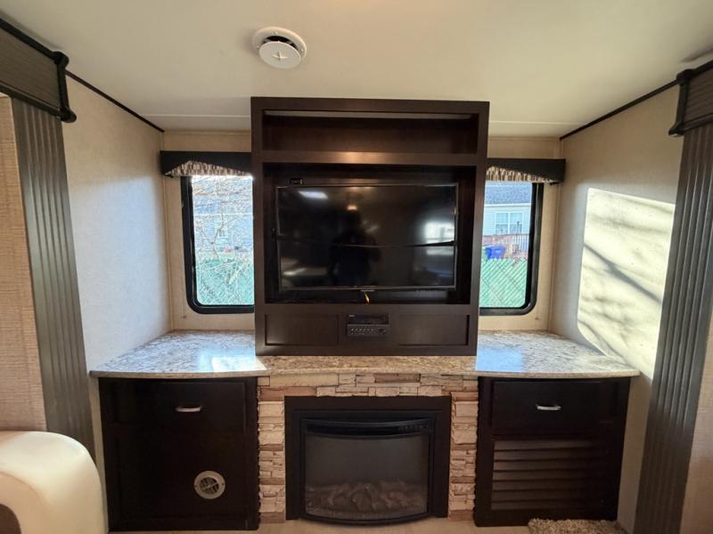 This Kodiak Ultimate 291RESL travel trailer by Dutchmen is the perfect unit to enjoy camping time with friends. The main feature is the rear entertainment area including a 39" TV and fireplace.