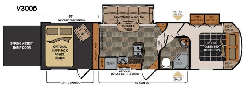 Enjoy this Voltage V-Series unit V3005 by Dutchmen when you head out for a weekend filled with fun! In this toy hauler fifth wheel you will enjoy a 10' garage area and dual slides in the front living space which features everything you need and more while traveling away from home.