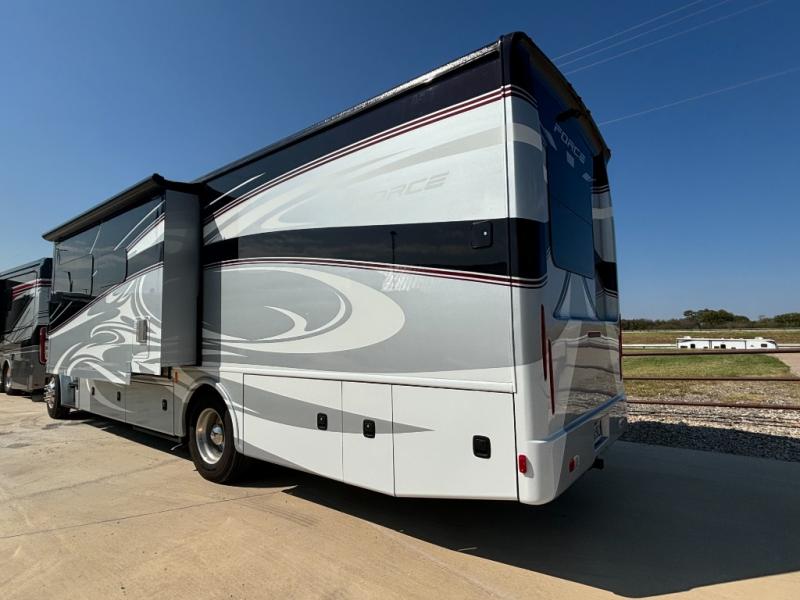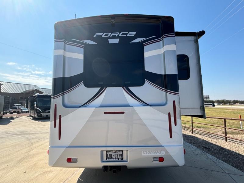 Step inside the FORCE motor home 35DS by Dynamax and find a front cab over bunk bed, double slides, and a rear king bed.