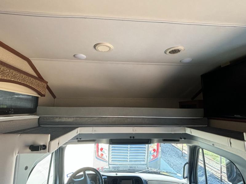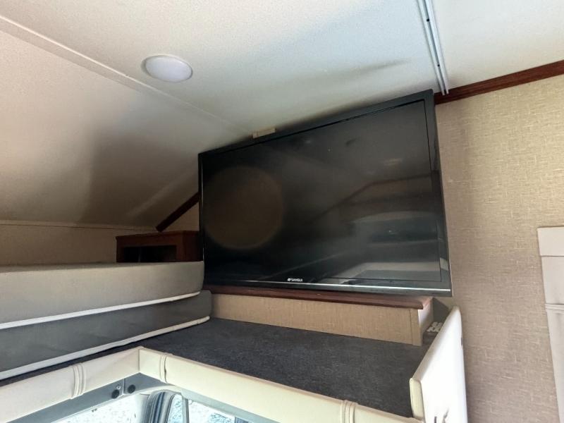 Above the cab there is a bunk, and a 39" TV on electric swivel bracket which makes for easy viewing throughout the front of the motor home.