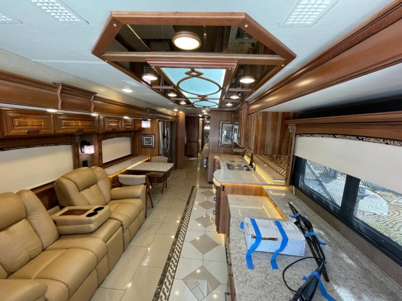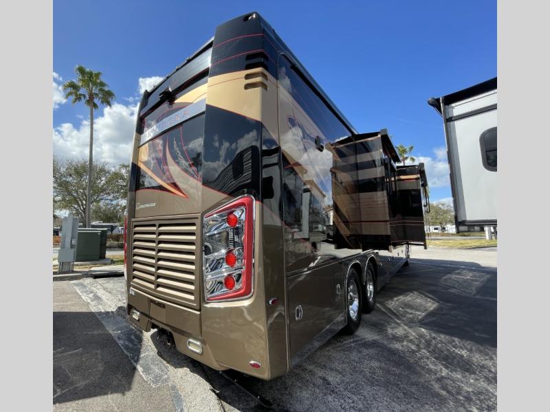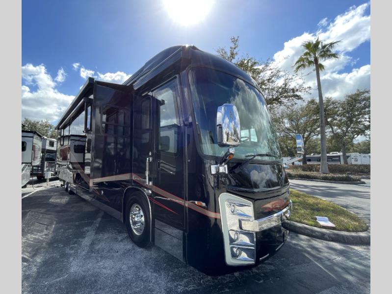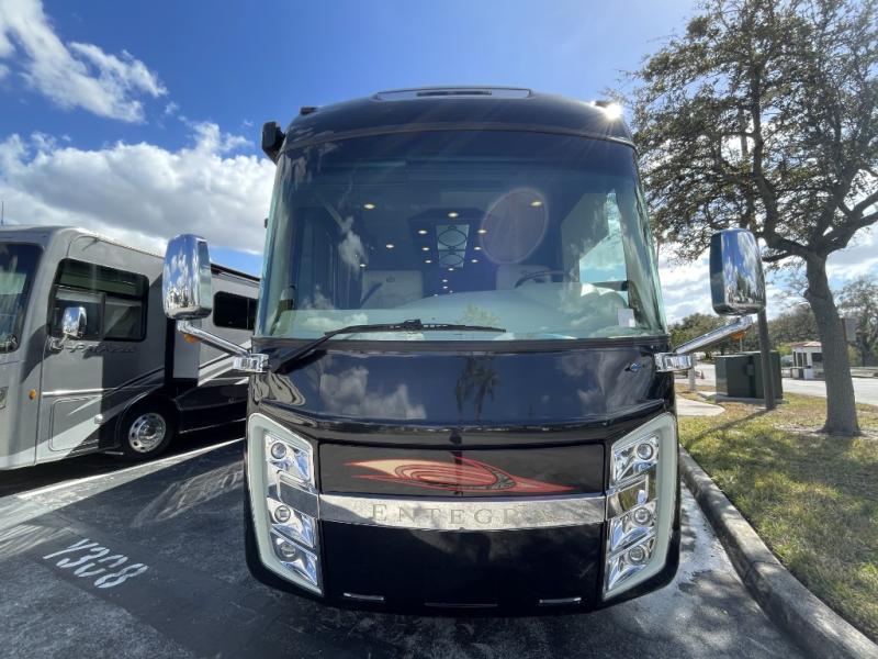 The Cornerstone 45A class A diesel motor home by Entegra Coach features a rear bath, a half bath, front entertainment center, plus quad slides.
