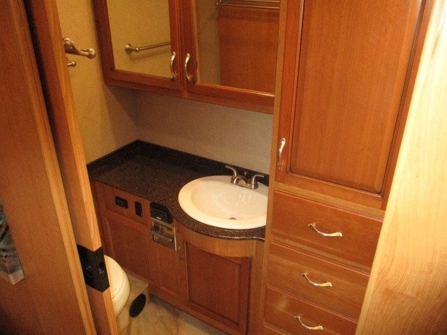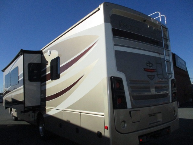 The Bounder 35K Fleetwood motor home features a rear master bathroom as well as convenient half bath.