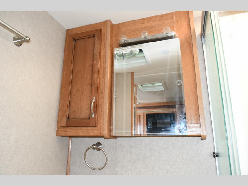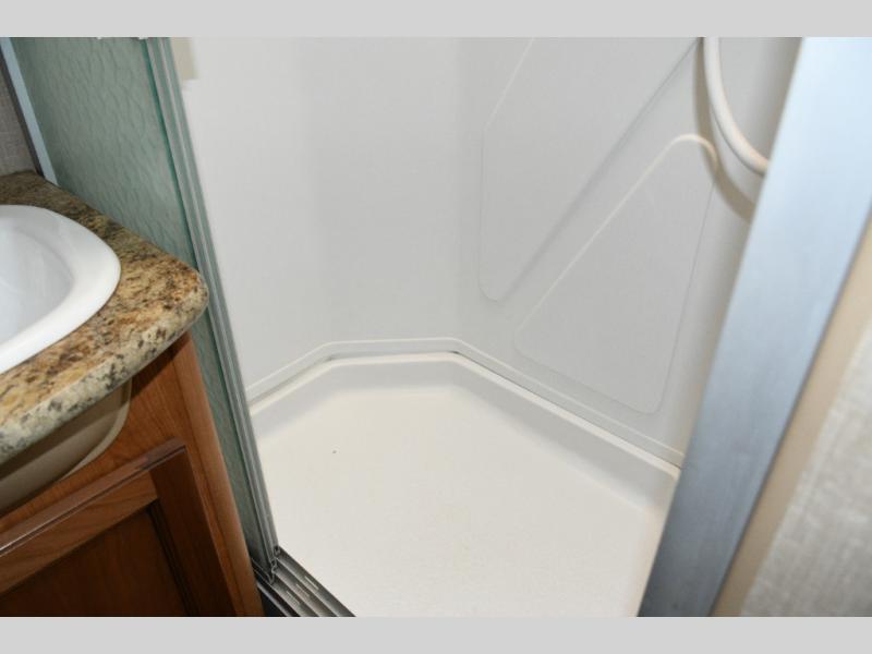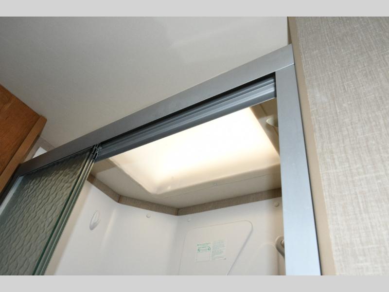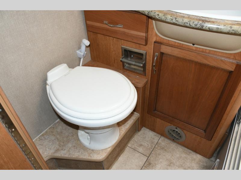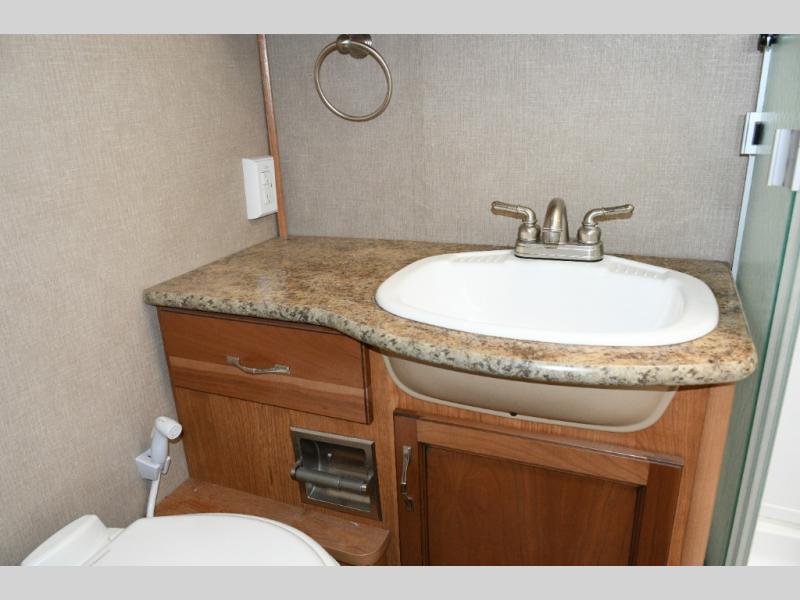 Freshen up in the full bath featuring a shower, toilet, and vanity with sink—everything you need to stay comfortable and self-contained while traveling. -