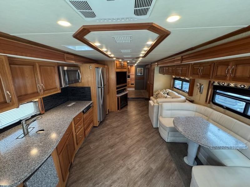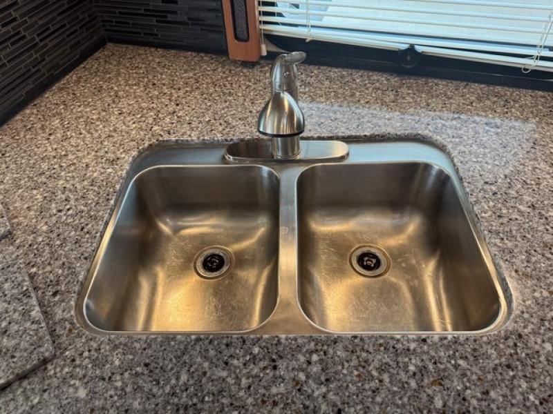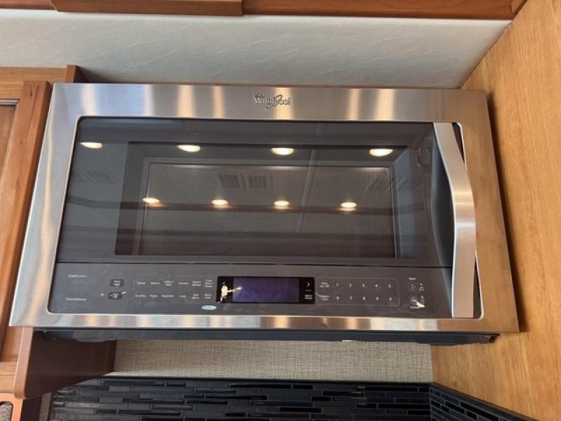 Wow! Luxury and Comfortable!Step inside in front of the passenger side seat. The kitchen is directly behind and features a spacious kitchen sink with counter-top extension, a three burner range, overhead microwave oven, residential size refrigerator, and storage pantry for your dry and canned goods.