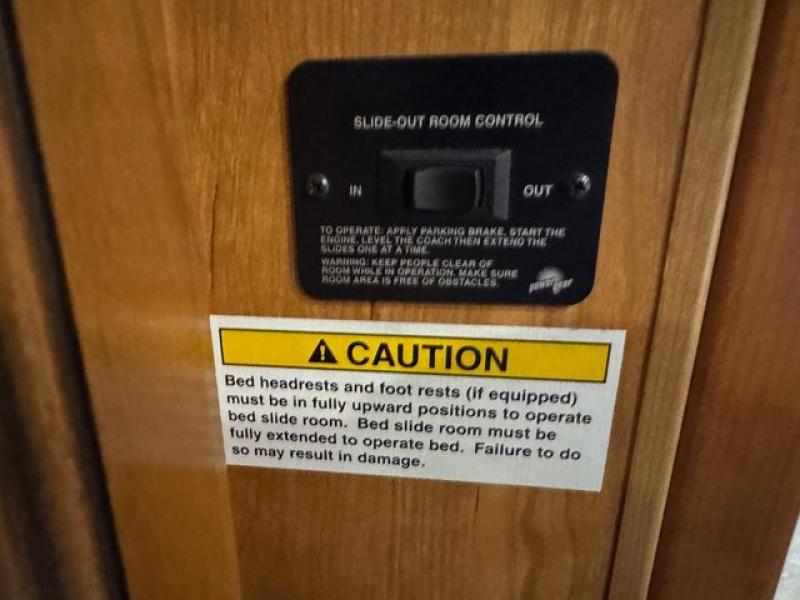 Beyond the L-sofa along the road side full slide find a storage cabinet, and then the rear master bedroom and bath. Here you will enjoy two wardrobes with one being a full length, plus a 32" LED TV to finish up the slide. Opposite along the curb side sleep comfortable on a separate slide out king size memory foam bed with nightstands on either side.