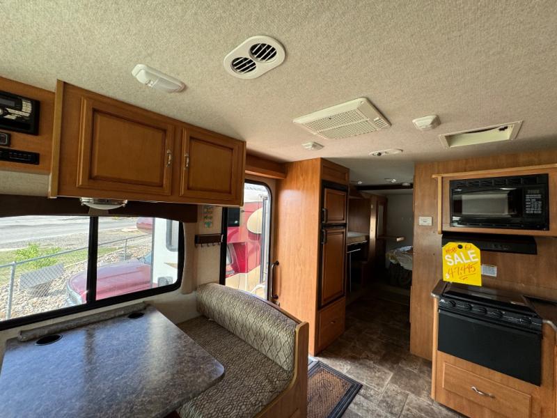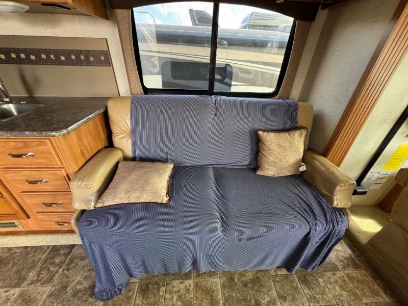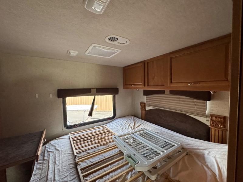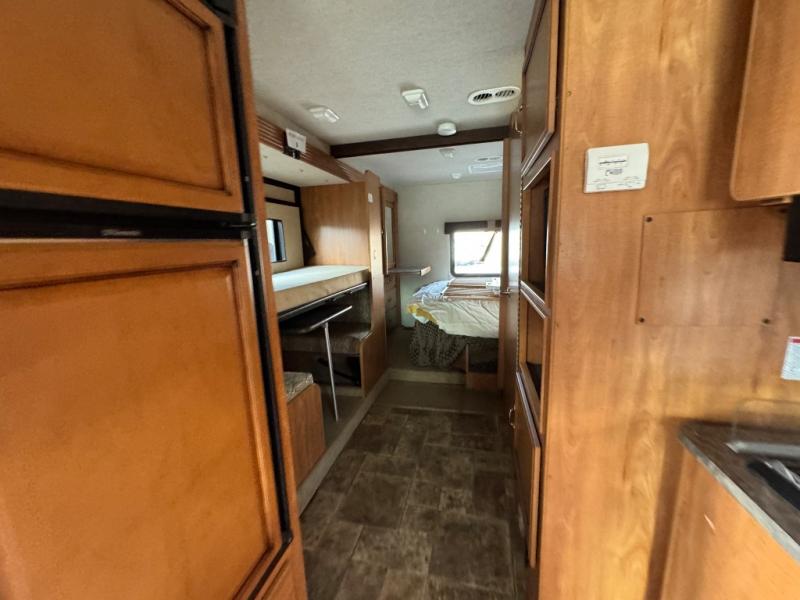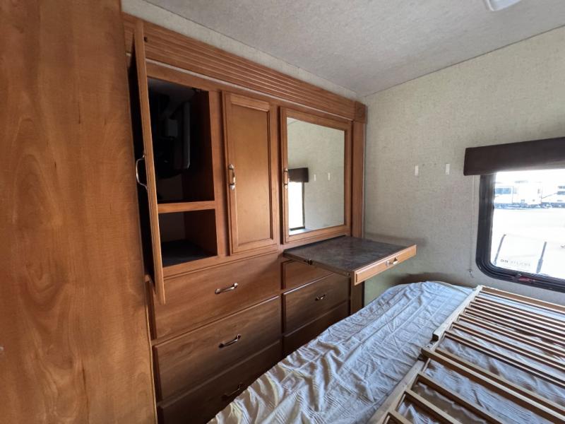 In the rear bedroom you will enjoy the queen bed with nightstands on either side for your things. Across from the bed there is a slide with a wardrobe and a set of 33" x 73" bunk beds. Enjoy a 19" LED TV near the wardrobe with a lower dresser for your clothes. You will also find plenty of overhead cabinets throughout the motor home, so storage is not a problem.
