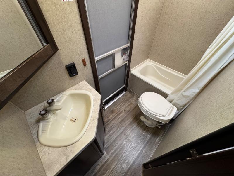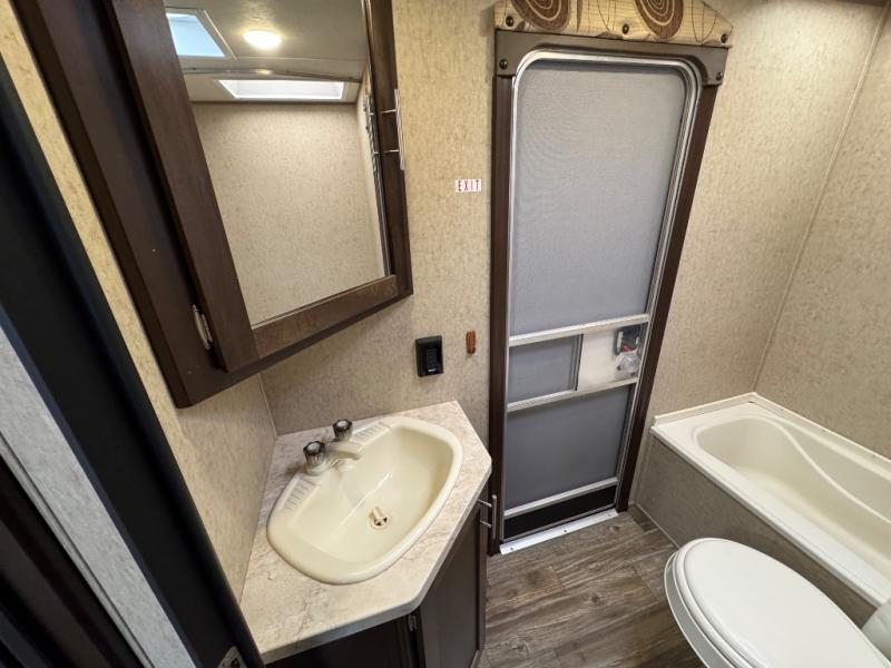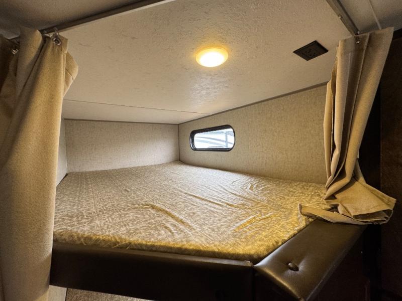 There are plenty of overhead cabinets throughout the travel trailer as well as outside storage, and so much more!