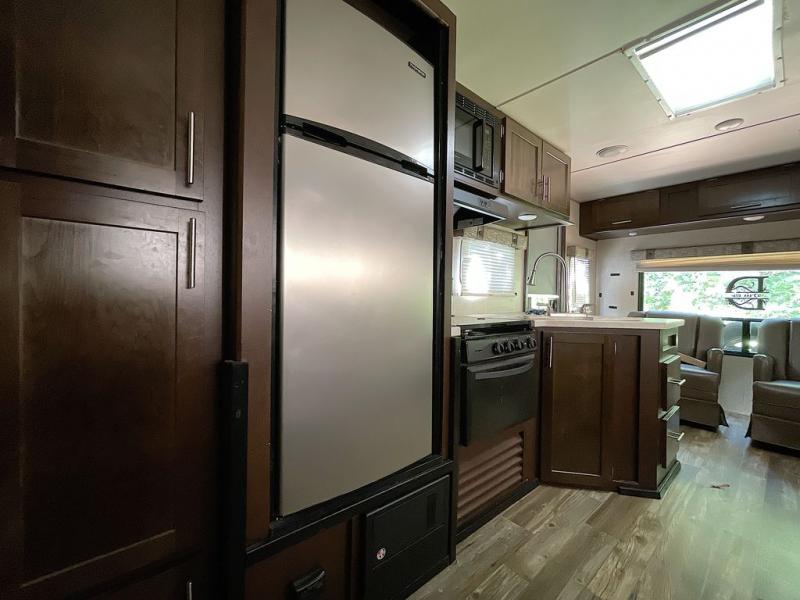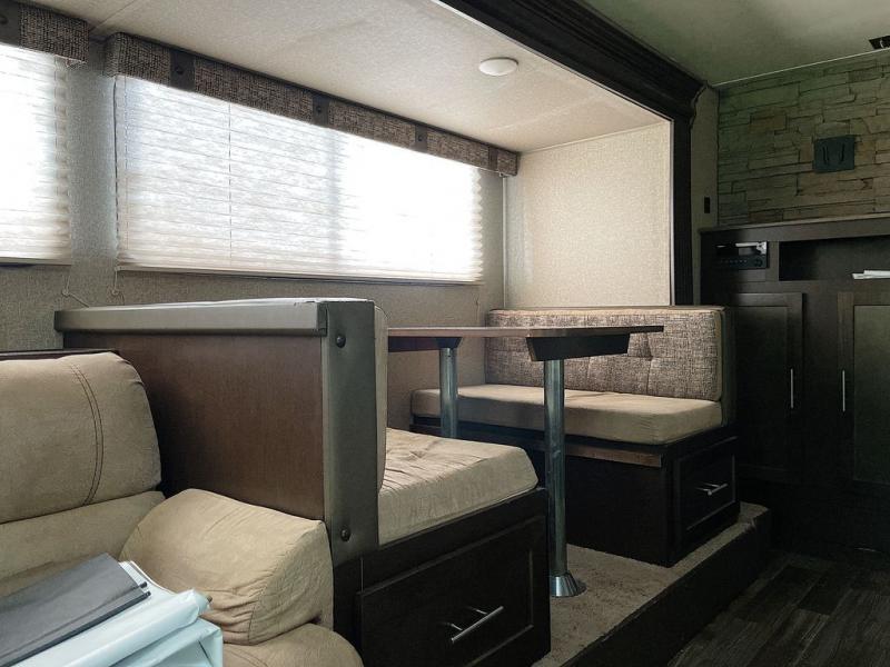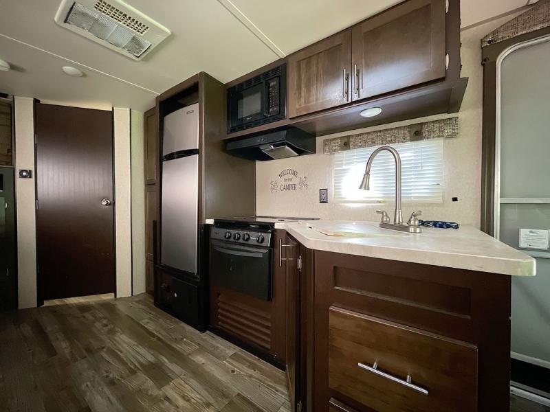 You will also find plenty of overhead cabinets throughout the travel trailer, as well as outside storage, plus so much more.