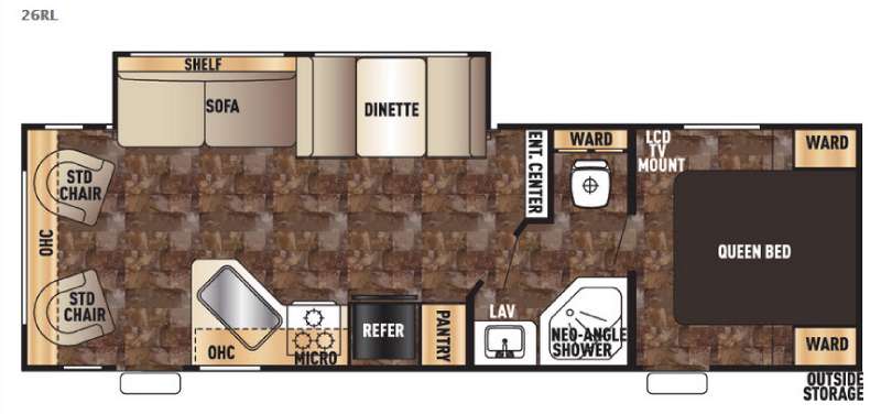 You will love the rear living area and the single slide on the Cherokee Grey Wolf 26RL travel trailer by Forest River.