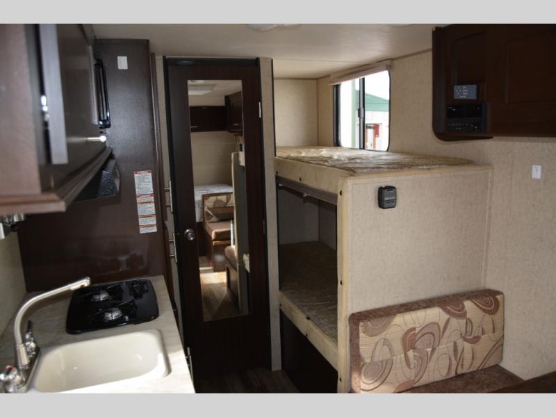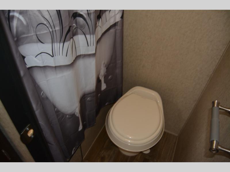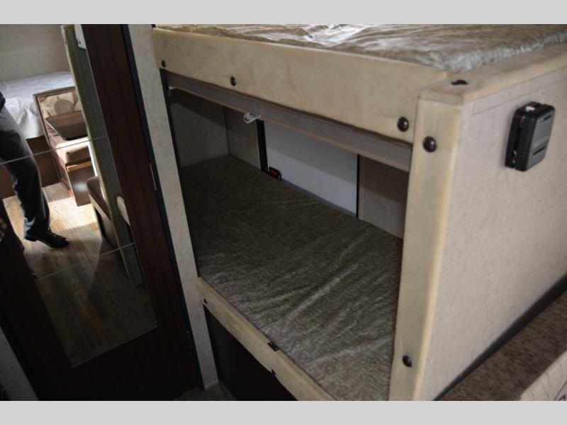The very back left corner features a private tub/shower and toilet area. Right next door a set of bunks that the kids will enjoy sleeping on, plus so much more!