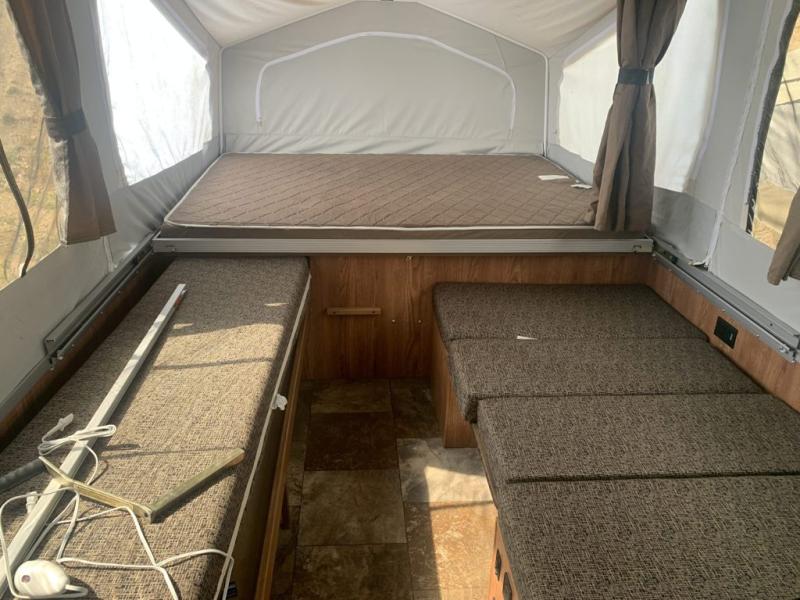 Enjoy camping in the Flagstaff MAC/LTD 228 folding pop-up camper by Forest River. This camper offers a gaucho/bed, outside gas grill, rear 60" x 80" tent bed and a 70" x 80" front KING tent bed, plus much more!