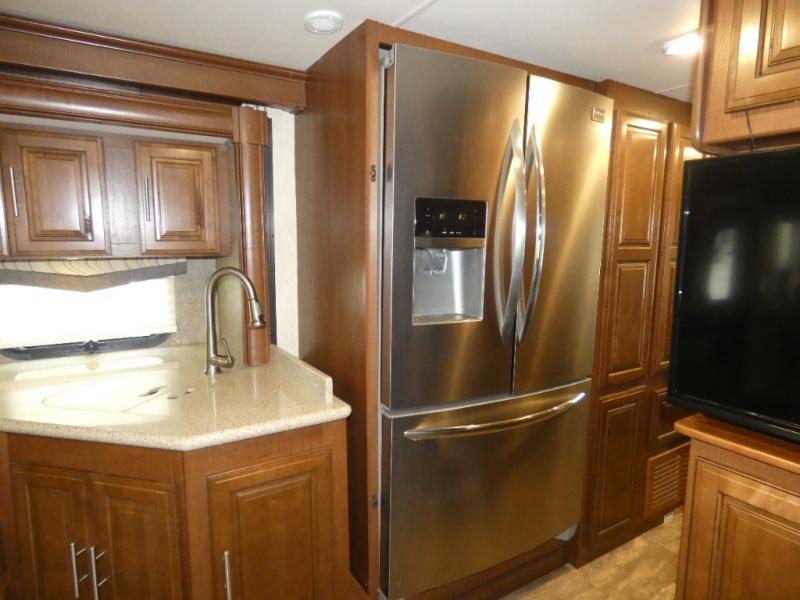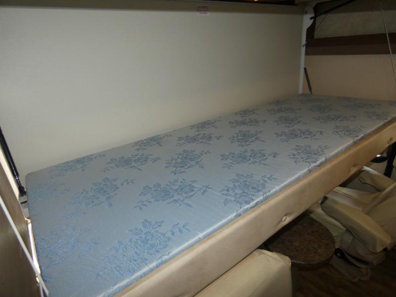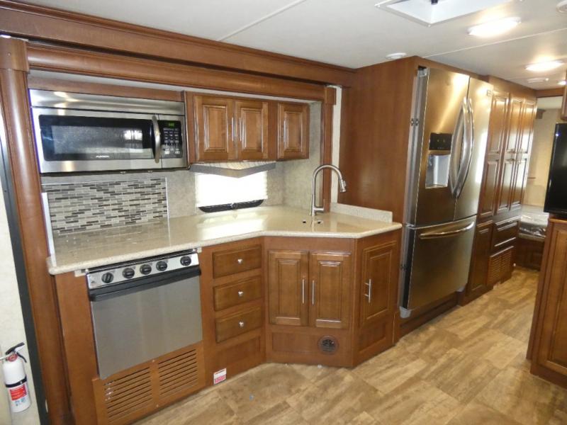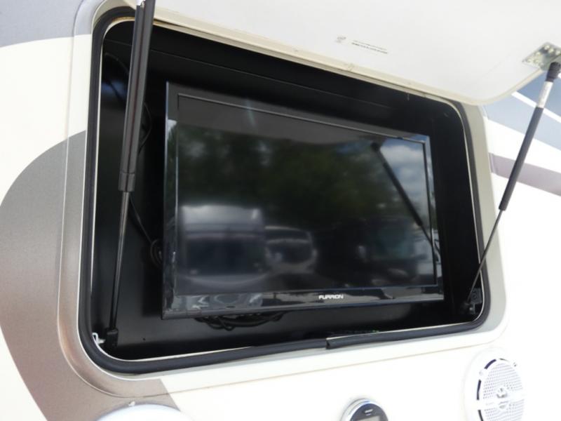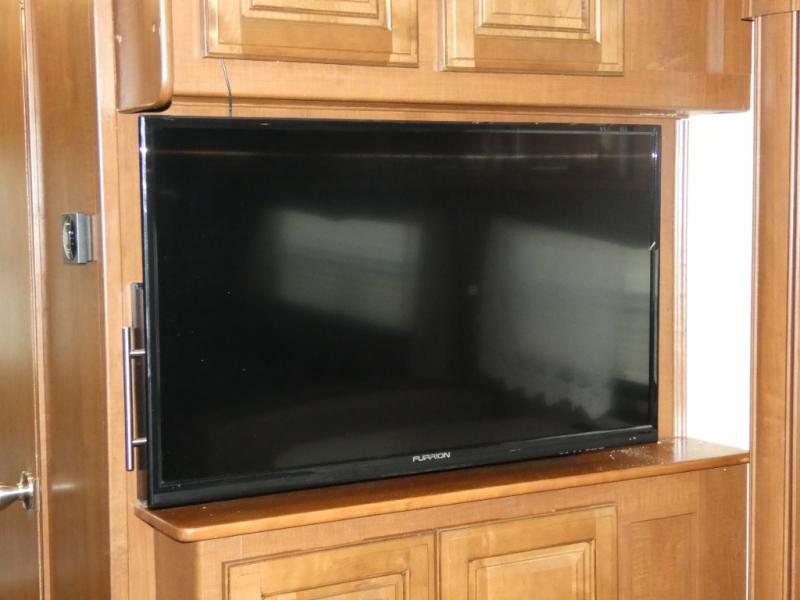 In the living area you will find a barrel chair to your right as you enter. Along the driver's side wall you have a hide-a-bed and dinette slide, and a TV. The opposite side of the motor home offers a three burner range and double kitchen sink slide.