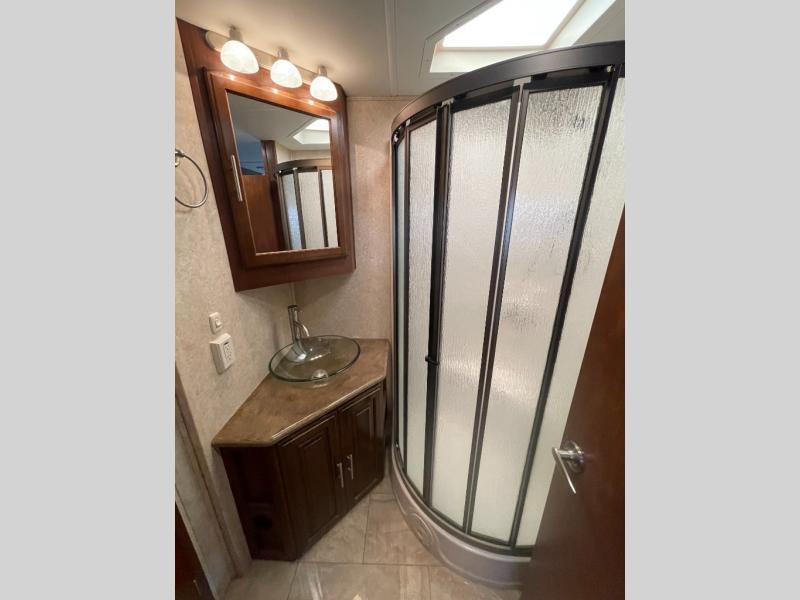 There are plenty of overhead cabinets throughout the motor home. Let this motor home take you on your next adventure!