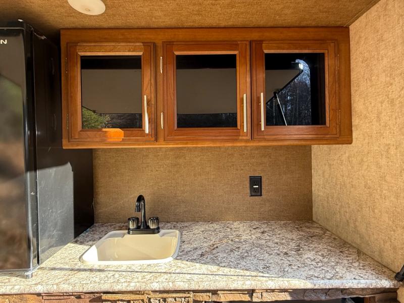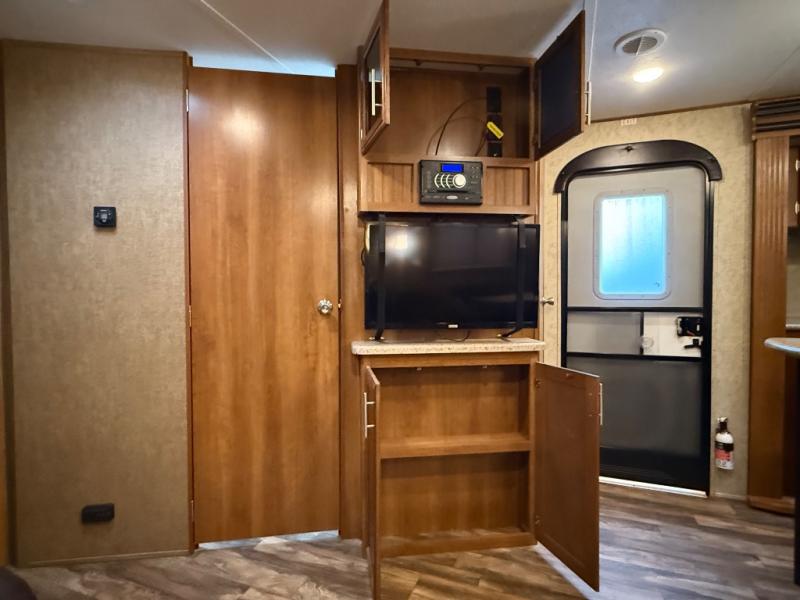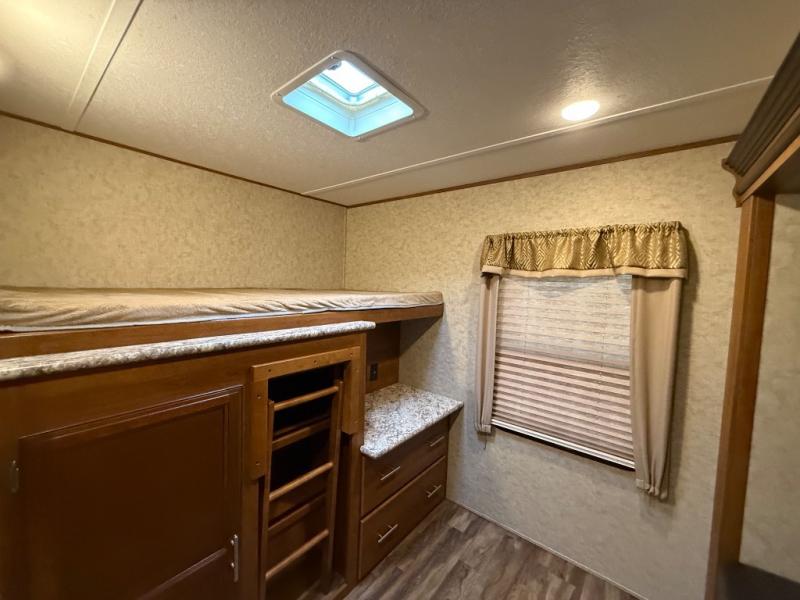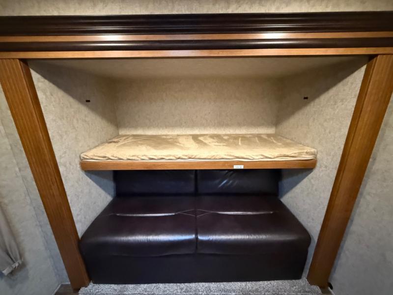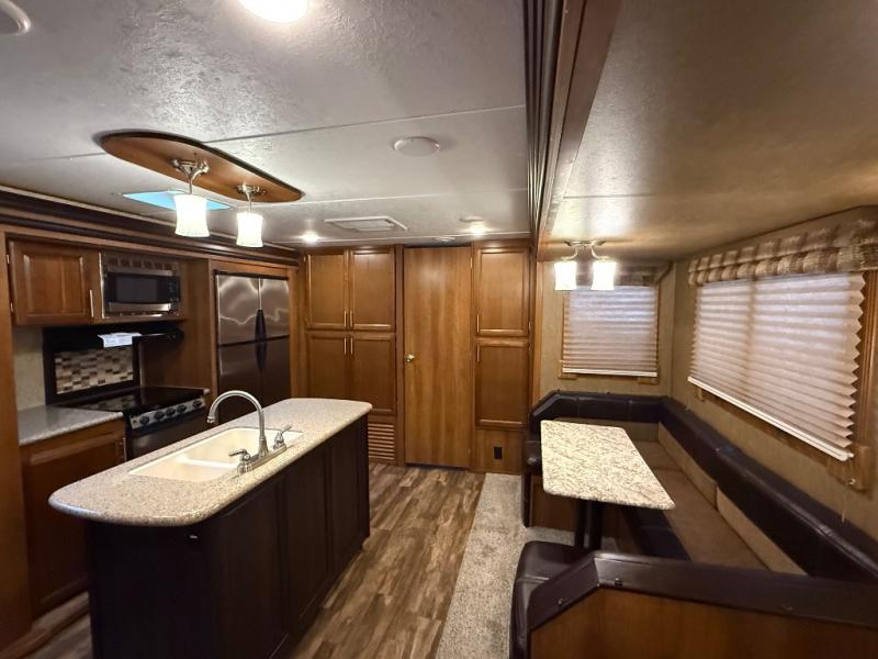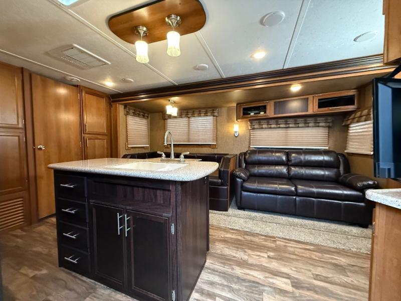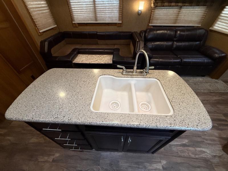 The kitchen feels surprisingly upscale for a 2016 model, featuring a center island, plenty of counter space, and the kind of layout that makes meal prep easy and enjoyable. And when the weather is perfect, the outdoor kitchen lets you move the party outside without missing a moment of fun. The LaCrosse 329BHT blends comfort, functionality, and a touch of luxury, making it a fantastic choice for families who want room to spread out and enjoy every mile.