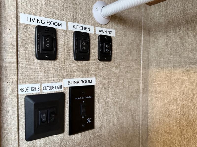 The rear bunk house is a great place that your kids are sure to enjoy. There is a sleep and play slide with a bunk above. You will also find a toy box, and a bunk on the opposite side. Just outside of the bunk house is a linen cabinet.