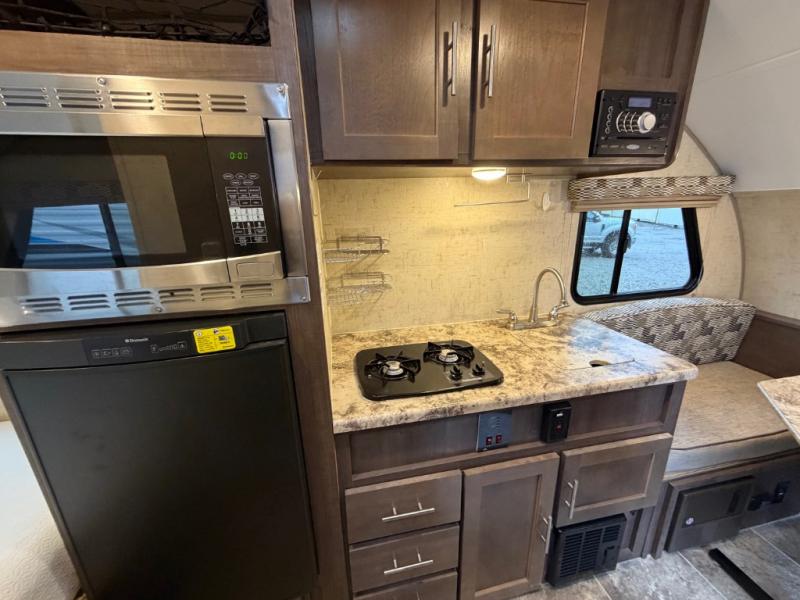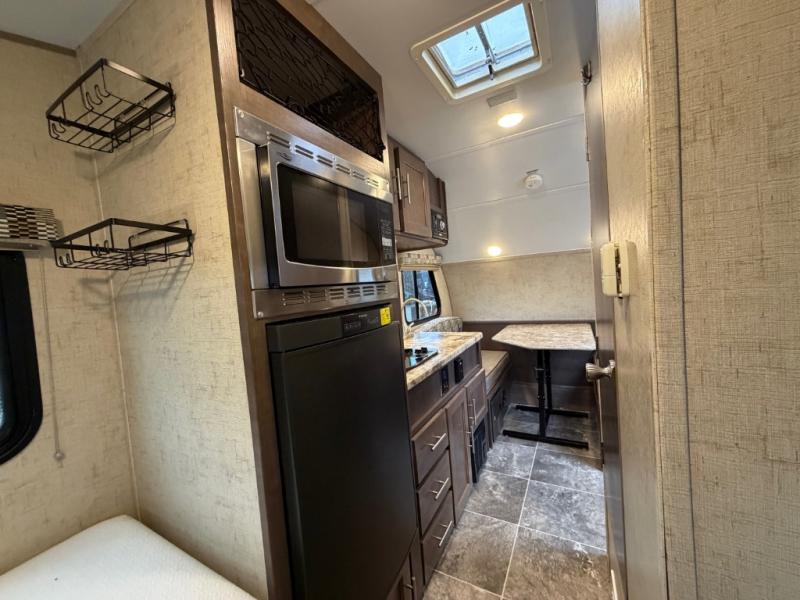At under 2,700 lbs dry weight and just 18'4" long, this single-axle trailer is built for easy towing behind many SUVs and light trucks. Its aerodynamic shape improves fuel efficiency, and a weight distribution hitch (recommended) ensures confident, stable handling.Comfortable, Thoughtful Interior