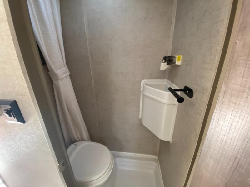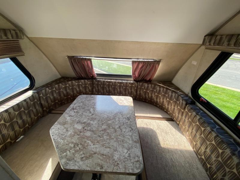 The RP-176 R-Pod travel trailer by Forest River, offers a bunk beds with storage and a U-shaped dinette.