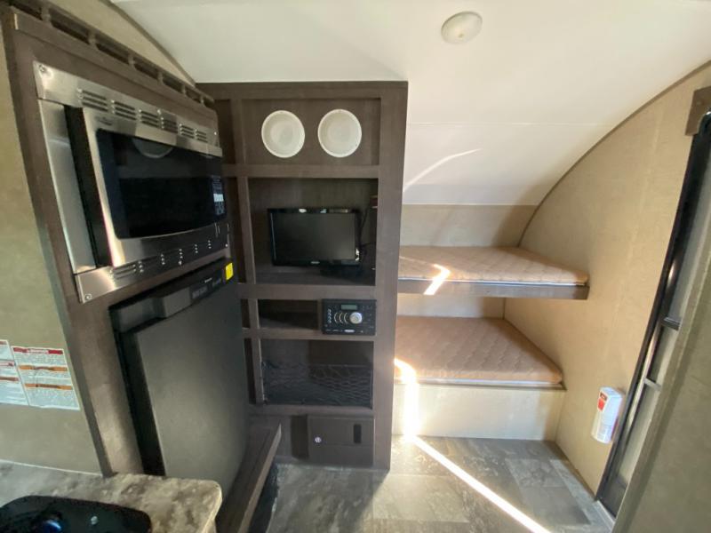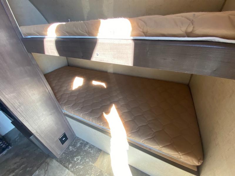 In the front of the trailer there is a set of bunk beds with storage, plus more!