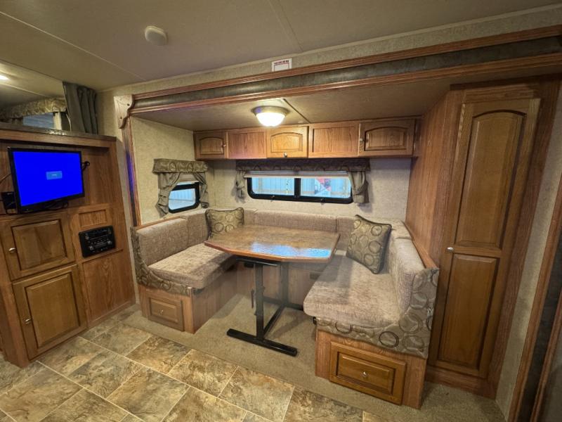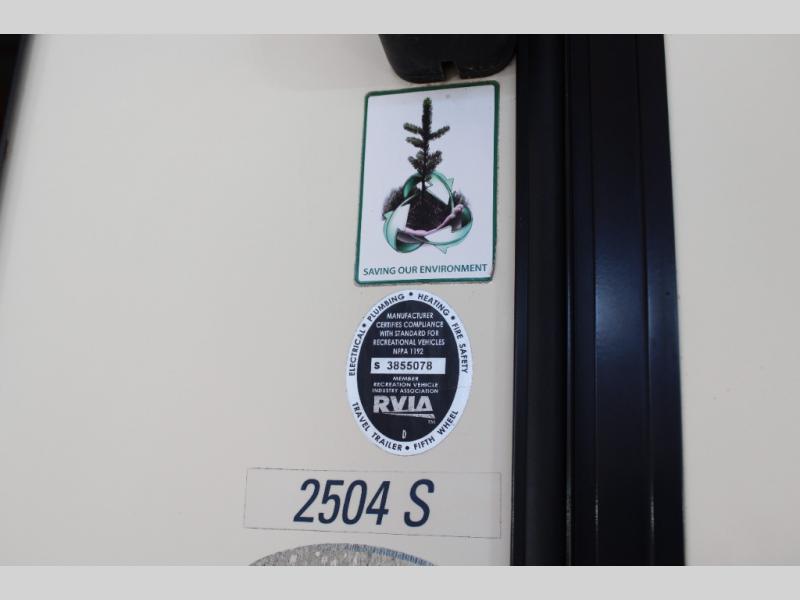 The Rockwood Mini Lite 2504S travel trailer by Forest River offers a u-shaped dinette and a single slide.