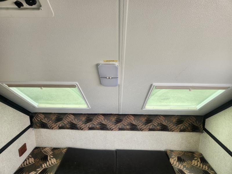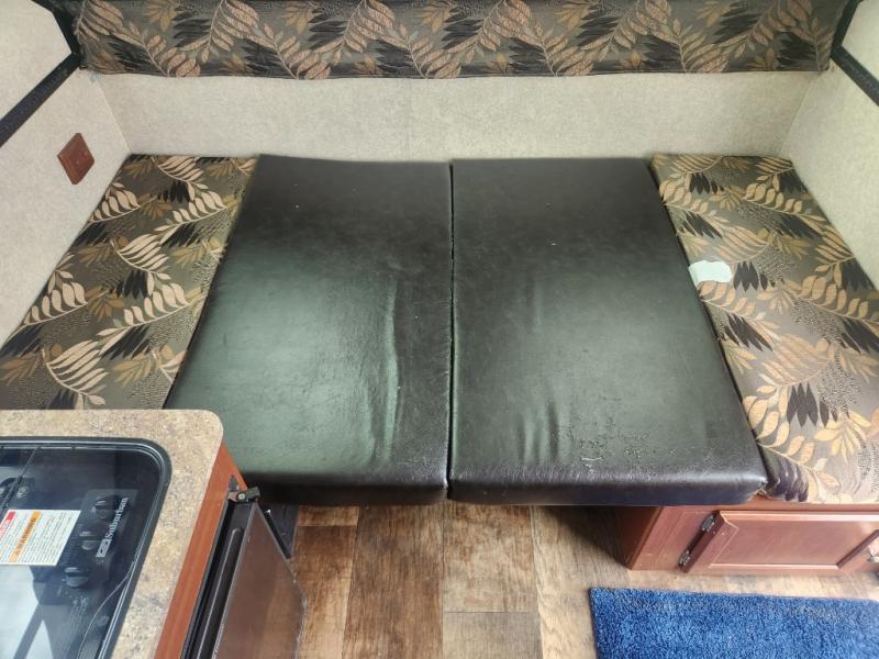 As you enter to your right there is a booth dinette providing seating for meals as well as an extra sleeping space at night. To your left you will find a flip-up bed.