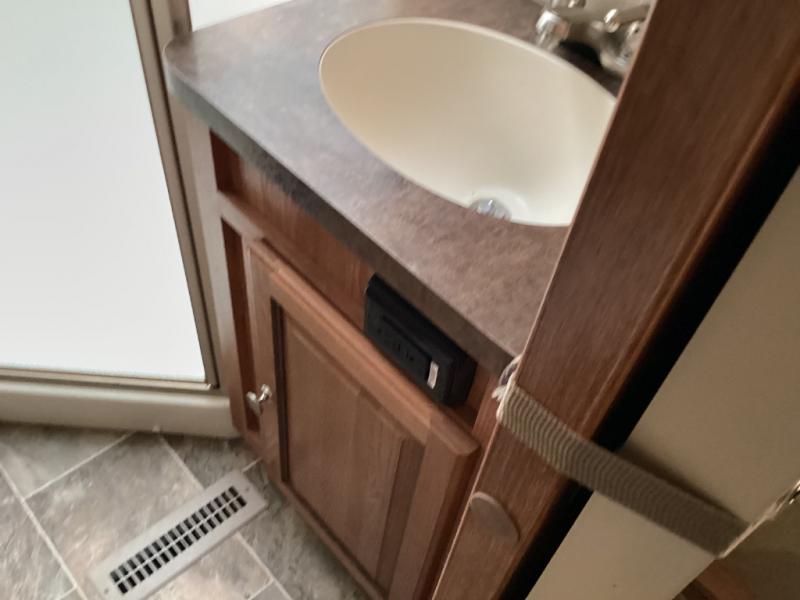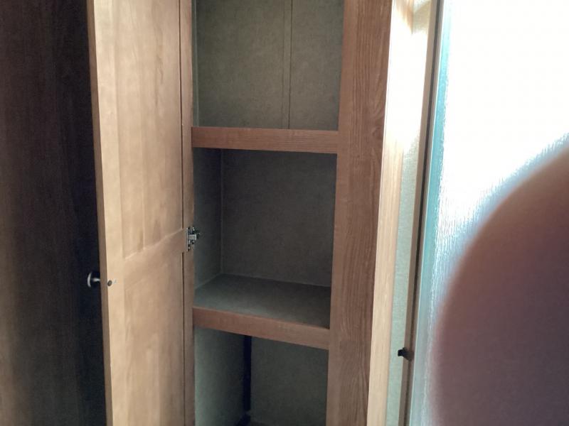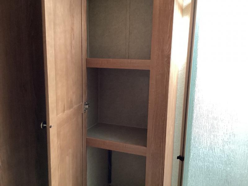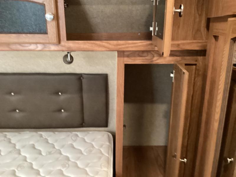 Storage is not a problem with the interior overhead cabinets and the exterior pass thru storage. Outside you can even enjoy an optional gas grill.