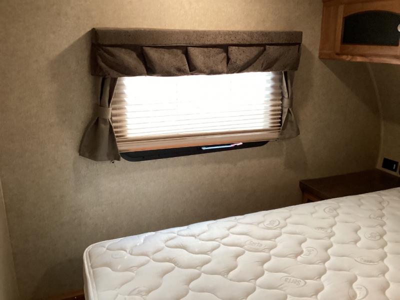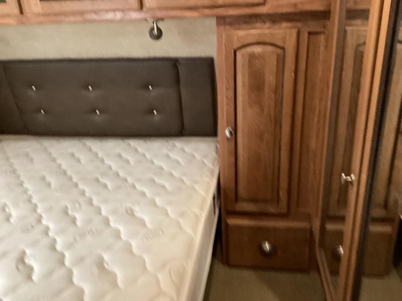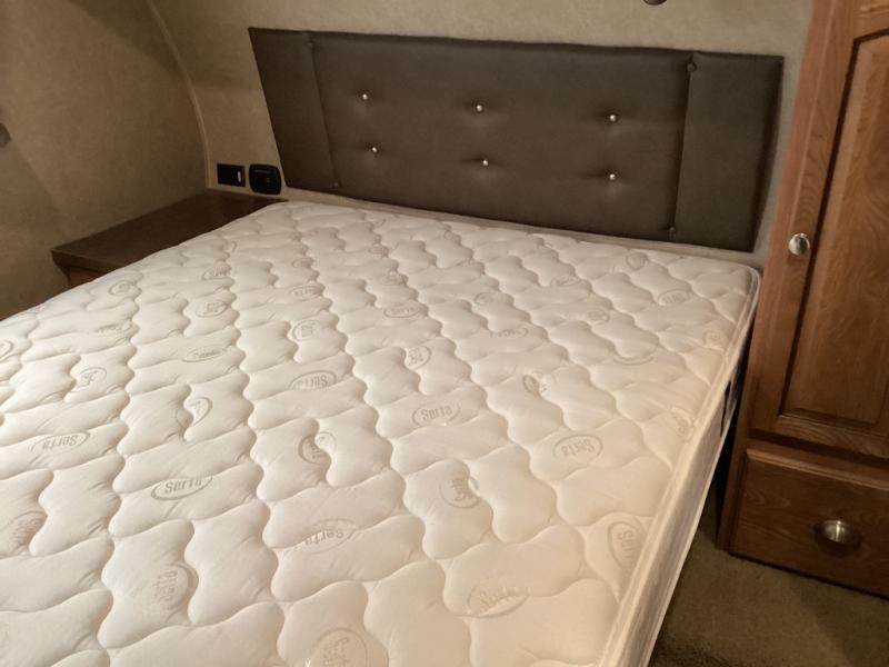 The front bedroom greets you with a queen bed and a nightstand on one side of the bed and a shirt closet on the other side of the bed. The wardrobe slide offers added storage. In the corner of the room you can even choose an optional TV.