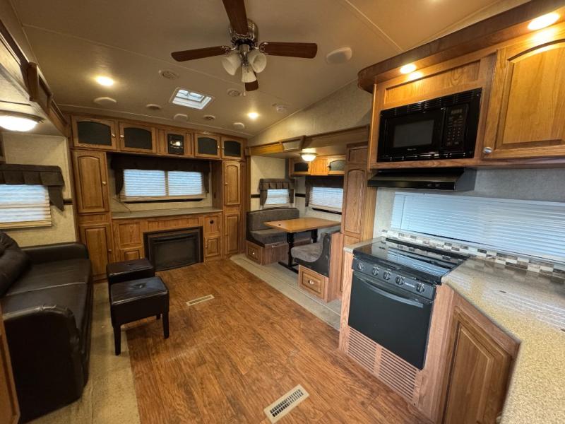 The Rockwood Signature Ultra Lite 8265WS fifth wheel by Forest River offers triple slides and a rear entertainment center.