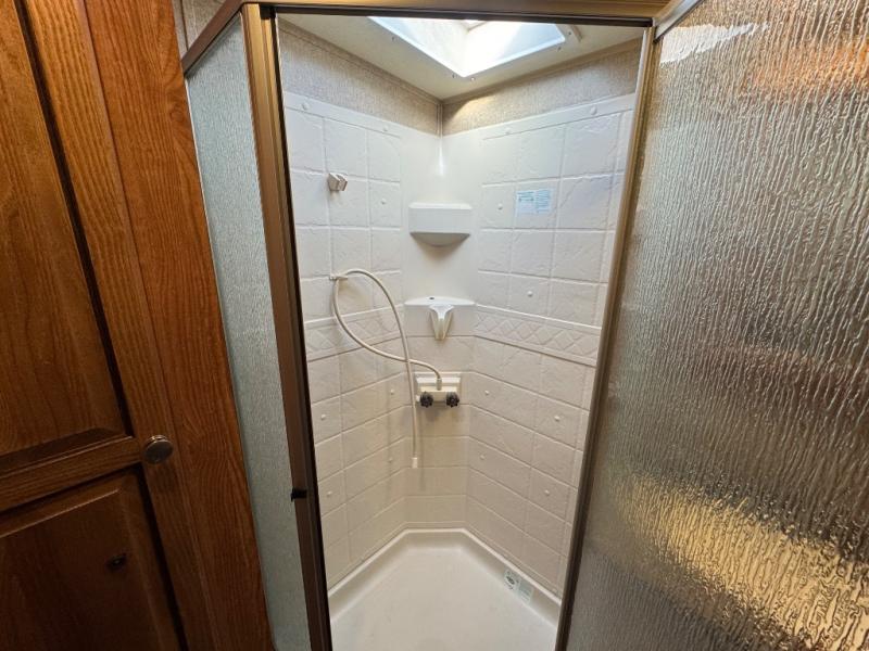 Storage is not a problem with the interior overhead cabinets and the exterior pass thru storage. Outside you can even enjoy an optional gas grill.