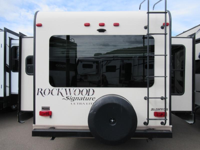 The Rockwood Signature Ultra Lite 8289WS fifth wheel by Forest River offers triple slides and a rear living area.