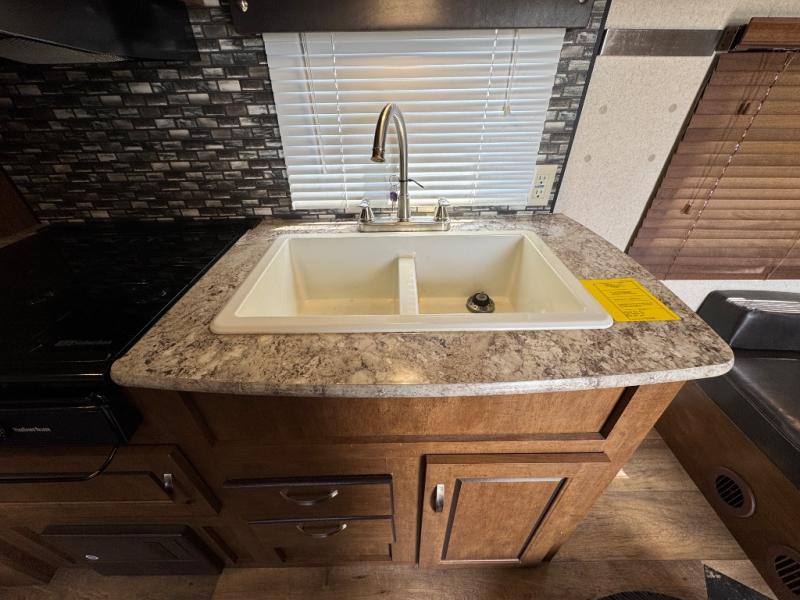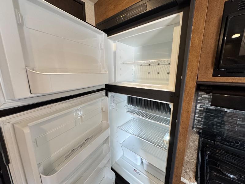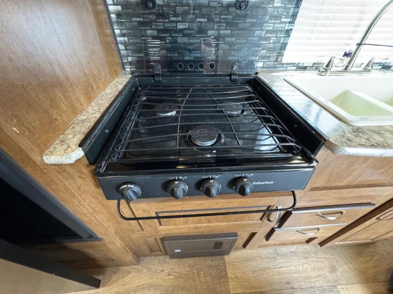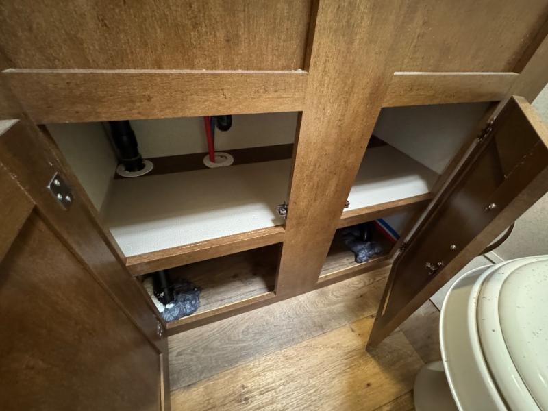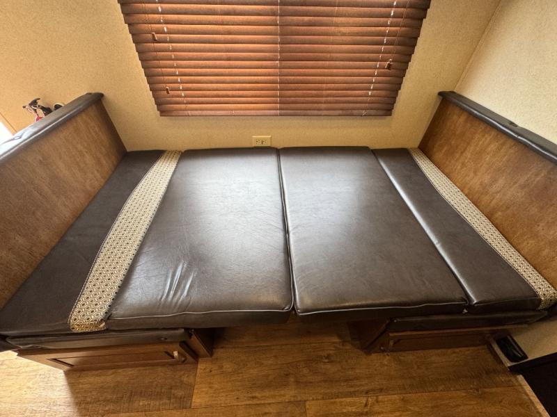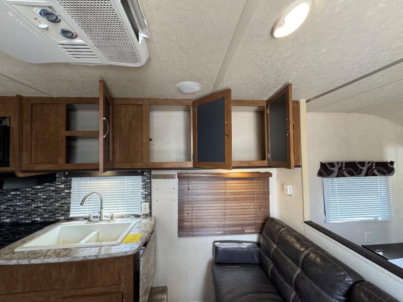 There are plenty of overhead cabinets throughout the travel trailer, so you can bring all of your necessary items from home, and much more.