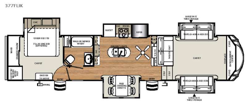 If you are looking for a fifth wheel with five slides and a large front living area, then you have found it in the Sierra 377FLIK by Forest River.