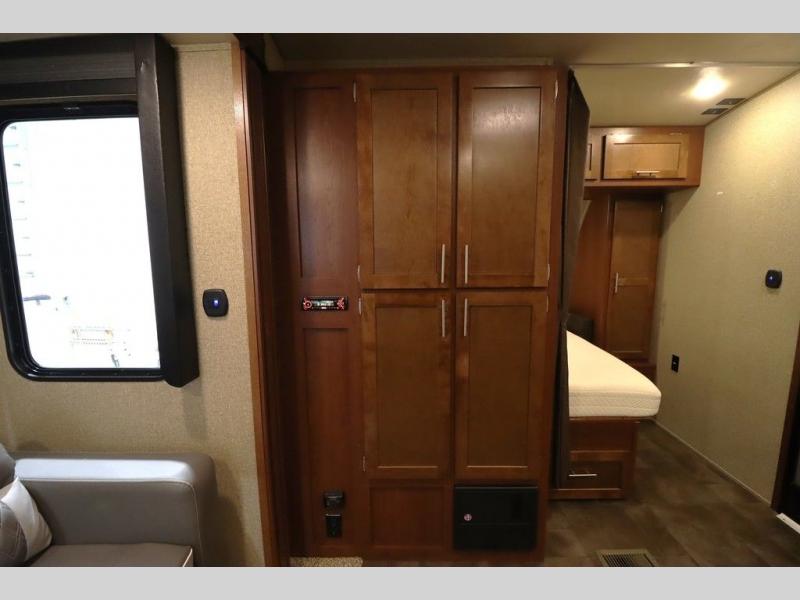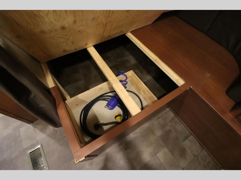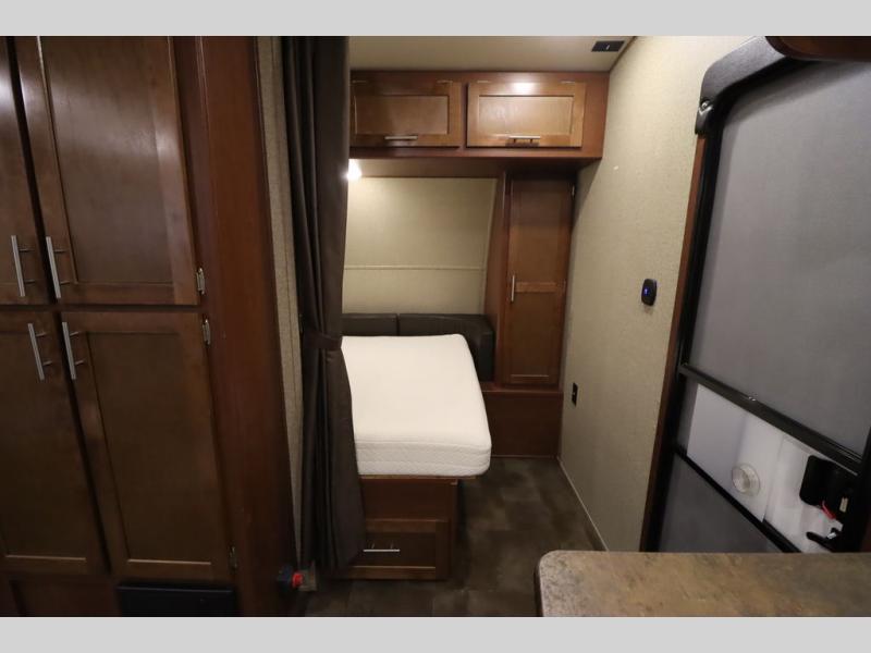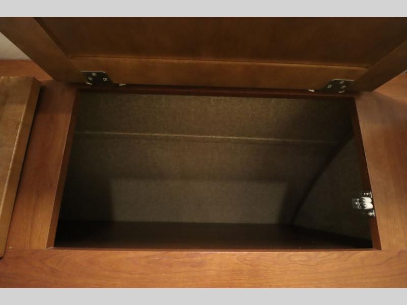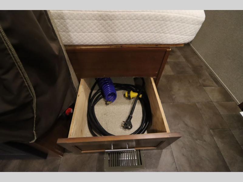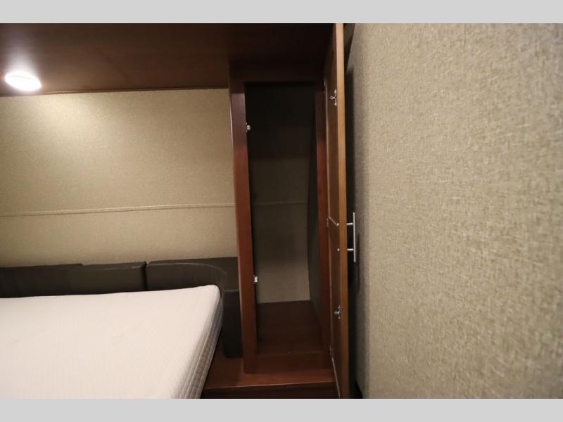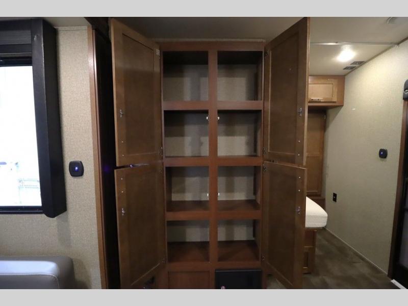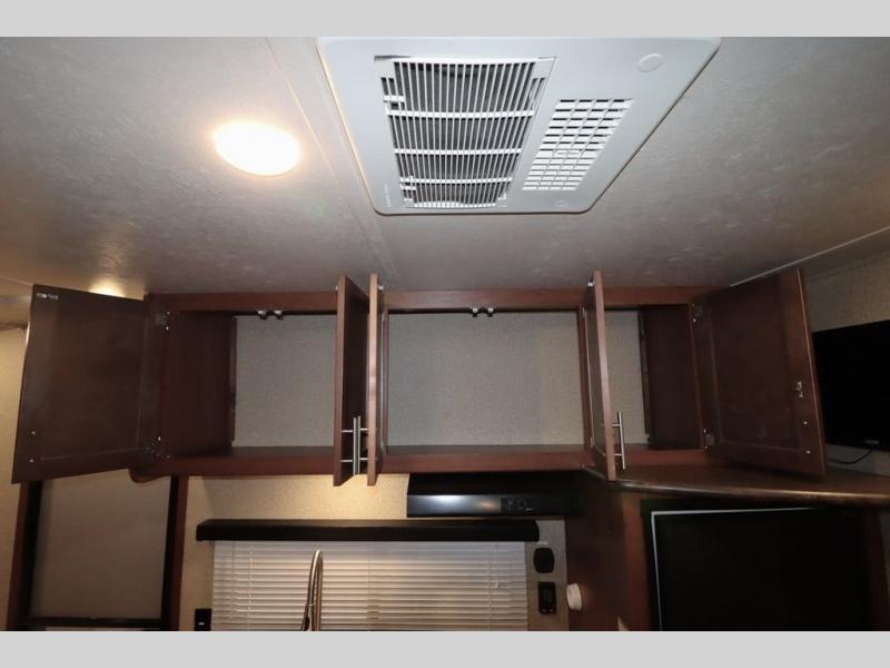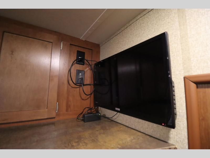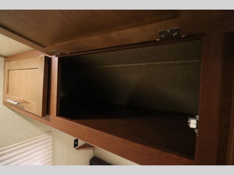 There is plenty of interior storage with the overhead cabinets throughout the model, as well as exterior storage, and an outside TV mount, plus so much more!