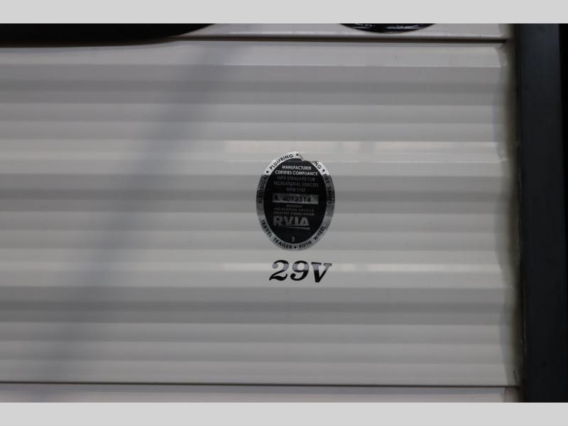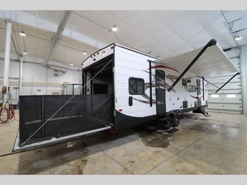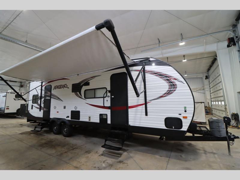 Load up the family and your off-road toys in this 29V Super Sport Vengeance toy hauler travel trailer by Forest River featuring a u-shaped dinette/sofa slide, dual entry, plus a walk through bathroom.