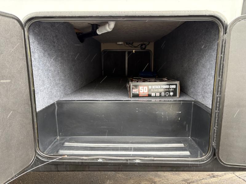 There is plenty of storage space with all of the overhead cabinets as well as exterior storage with a pass thru storage, and more!