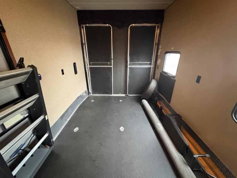 In the cargo area there is plenty of room for you off road toys and easy loading and unloading with the spring assist ramp. You will also find dual rollover sofas and free standing table along the rear wall. A side man door makes getting to your toys easy. A loft is above the cargo area with access from the main living room allowing more sleeping space for more friends!