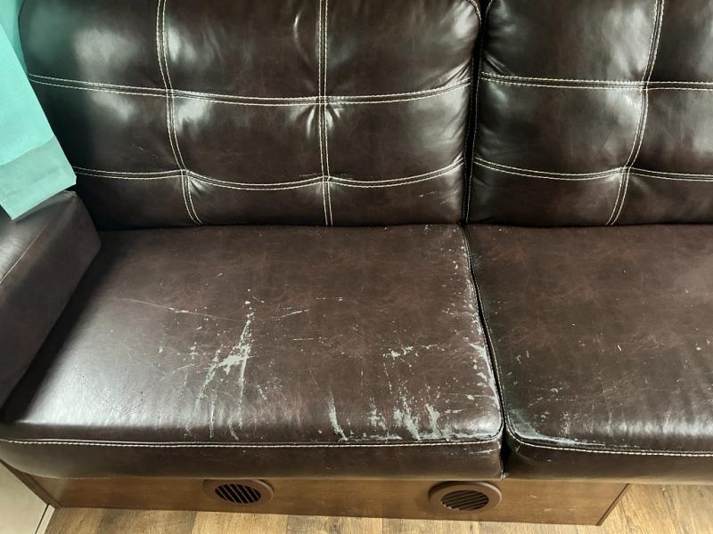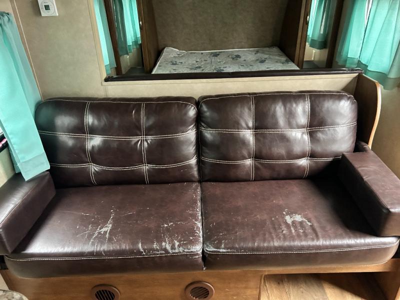 Entering the travel trailer, and find to the left that there is a dinette with TV hook-up above. Enjoy your meals at the dinette, and at night you can convert this area into additional sleeping space. The opposite side of the travel trailer has a double kitchen sink, three burner range, microwave, and refrigerator. Straight in from the entry door is a comfortable sofa.